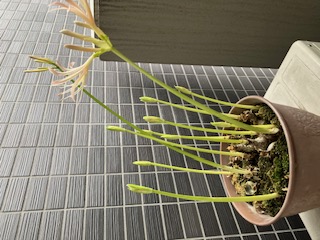 この夏も猛暑だったのでちゃんと芽が出てくれるかなと毎日鉢の土を確かめていました。すると、茎が2本、3日ほどすると茎が11本になっていました。感激!(9月23日)